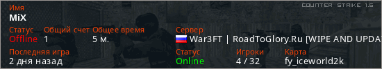 Играет на Counter Strike 1.6 сервере. Страна: РоссияПервый раз замечен 22:38 21.01.2026