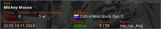 Играет на Call of Duty 4: Modern Warfare сервере. Страна: РоссияПервый раз замечен 22:53 19.11.2023
