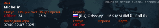 Играет на Counter Strike Global Offensive сервере. Страна: РоссияПервый раз замечен 10:43 09.07.2025