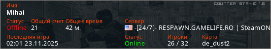 Играет на Counter Strike 1.6 сервере. Страна: СШАПервый раз замечен 23:45 04.02.2025
