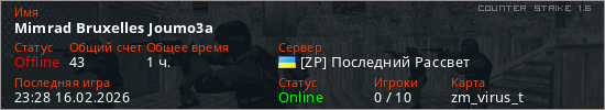 Играет на Counter Strike 1.6 сервере. Страна: УкраинаПервый раз замечен 21:52 13.02.2026