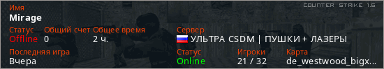 Последний раз был в сети Вчера Игрок с таким ником замечен на 22 серверах