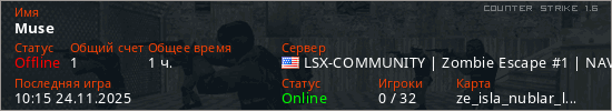 Играет на Counter Strike 1.6 сервере. Страна: СШАПервый раз замечен 09:03 24.11.2025