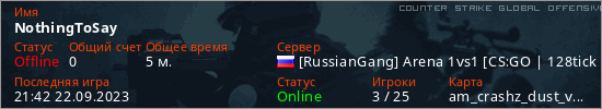 Играет на Counter Strike Global Offensive сервере. Страна: РоссияПервый раз замечен 21:33 22.09.2023