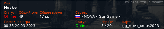 Играет на Counter Strike Source сервере. Страна: РоссияПервый раз замечен 00:21 20.03.2023