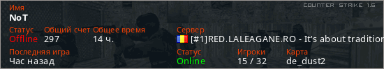 Играет на Counter Strike 1.6 сервере. Страна: РумынияПервый раз замечен 20:56 10.12.2025