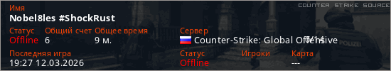 Играет на Counter Strike Source сервере. Страна: РоссияПервый раз замечен 19:06 11.03.2026