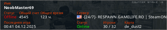 Играет на Counter Strike 1.6 сервере. Страна: СШАПервый раз замечен 14:01 12.06.2025