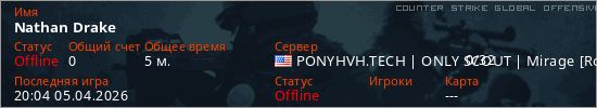 Играет на Counter Strike Global Offensive сервере. Страна: СШАПервый раз замечен 19:37 05.04.2026