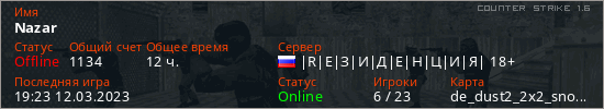Последний раз был в сети 19:23 12.03.2023 Игрок с таким ником замечен на 34 серверах