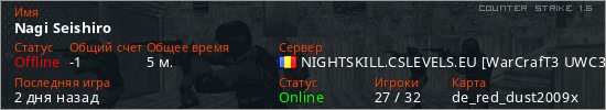 Последний раз был в сети Вчера Игрок с таким ником замечен на 6 серверах
