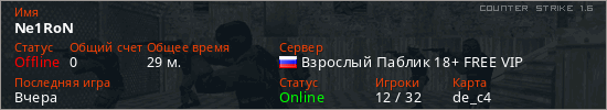 Последний раз был в сети Вчера Игрок с таким ником замечен на 2 серверах