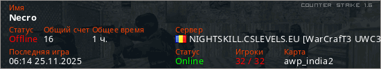 Играет на Counter Strike 1.6 сервере. Страна: РумынияПервый раз замечен 03:40 14.11.2024