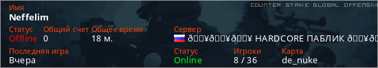 Играет на Counter Strike Global Offensive сервере. Страна: РоссияПервый раз замечен 00:48 23.03.2026