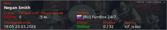 Играет на Team Fortress 2 сервере. Страна: РоссияПервый раз замечен 18:56 20.03.2026