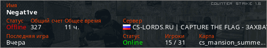 Играет на Counter Strike 1.6 сервере. Страна: РоссияПервый раз замечен 06:00 26.07.2021