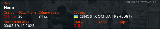 Играет на Counter Strike 1.6 сервере. Страна: УкраинаПервый раз замечен 22:37 13.12.2025