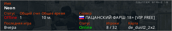 Последний раз был в сети Вчера Игрок с таким ником замечен на 38 серверах