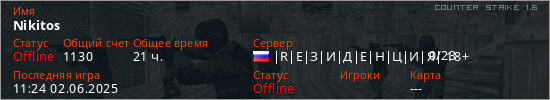 Играет на Counter Strike 1.6 сервере. Страна: РоссияПервый раз замечен 14:14 18.07.2019