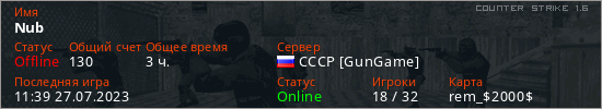 Играет на Counter Strike 1.6 сервере. Страна: РоссияПервый раз замечен 15:22 21.05.2023