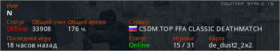 Последний раз был в сети 15 часов назад Игрок с таким ником замечен на 46 серверах