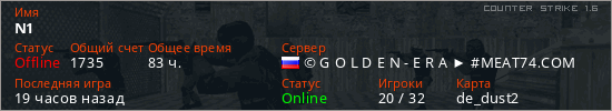 Последний раз был в сети 17 часов назад Игрок с таким ником замечен на 35 серверах