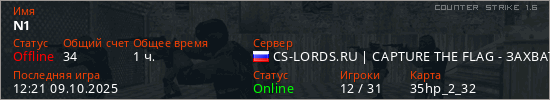 Последний раз был в сети 12:21 09.10.2025 Игрок с таким ником замечен на 34 серверах