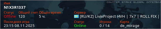 Играет на Counter Strike Global Offensive сервере. Страна: КазахстанПервый раз замечен 12:01 17.08.2025