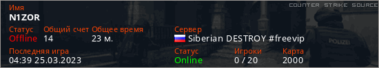 Играет на Counter Strike Source сервере. Страна: РоссияПервый раз замечен 08:11 04.03.2023