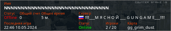 Играет на Counter Strike 1.6 сервере. Страна: РоссияПервый раз замечен 22:26 10.05.2024