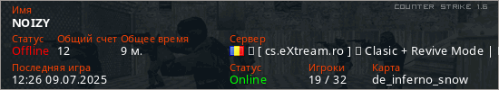 Играет на Counter Strike 1.6 сервере. Страна: РумынияПервый раз замечен 12:14 09.07.2025