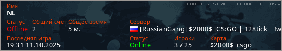 Играет на Counter Strike Global Offensive сервере. Страна: РоссияПервый раз замечен 19:27 11.10.2025