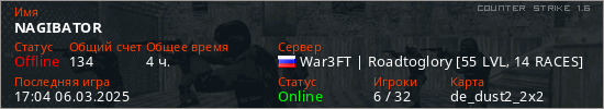 Последний раз был в сети 17:04 06.03.2025 Игрок с таким ником замечен на 34 серверах