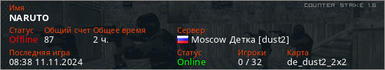 Последний раз был в сети 08:38 11.11.2024 Игрок с таким ником замечен на 30 серверах