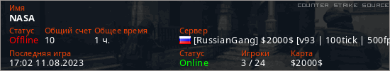 Играет на Counter Strike Source сервере. Страна: РоссияПервый раз замечен 10:10 08.08.2023