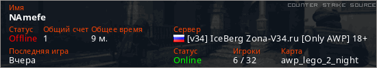 Играет на Counter Strike Source сервере. Страна: РоссияПервый раз замечен 09:51 20.01.2026