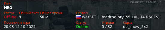 Последний раз был в сети 20:03 15.10.2025 Игрок с таким ником замечен на 41 сервере