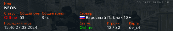 Последний раз был в сети 15:46 27.03.2024 Игрок с таким ником замечен на 31 сервере