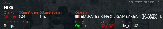 Последний раз был в сети Вчера Игрок с таким ником замечен на 36 серверах