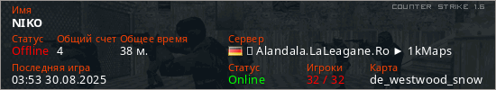 Последний раз был в сети 03:53 30.08.2025 Игрок с таким ником замечен на 26 серверах