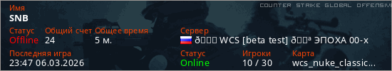 Играет на Counter Strike Global Offensive сервере. Страна: РоссияПервый раз замечен 23:43 06.03.2026