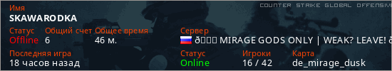Играет на Counter Strike Global Offensive сервере. Страна: РоссияПервый раз замечен 15:04 17.06.2025