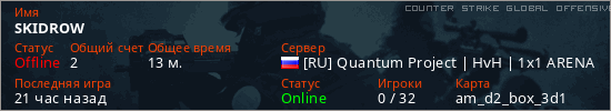 Играет на Counter Strike Global Offensive сервере. Страна: РоссияПервый раз замечен 15:47 18.04.2026