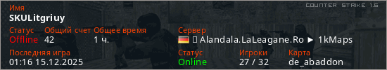 Последний раз был в сети 01:16 15.12.2025 Игрок с таким ником замечен на 5 серверах