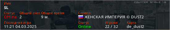 Последний раз был в сети 11:21 04.03.2025 Игрок с таким ником замечен на 14 серверах