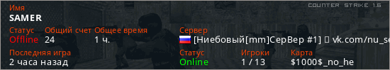 Последний раз был в сети Час назад Игрок с таким ником замечен на 8 серверах