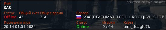 Последний раз был в сети 20:14 01.01.2024 Игрок с таким ником замечен на 31 сервере