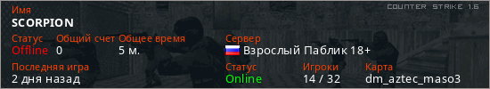 Последний раз был в сети 2 дня назад Игрок с таким ником замечен на 35 серверах