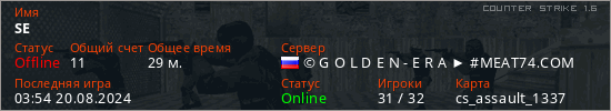 Играет на Counter Strike 1.6 сервере. Страна: РоссияПервый раз замечен 07:32 13.02.2024