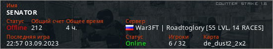 Последний раз был в сети 22:57 03.09.2023 Игрок с таким ником замечен на 24 серверах